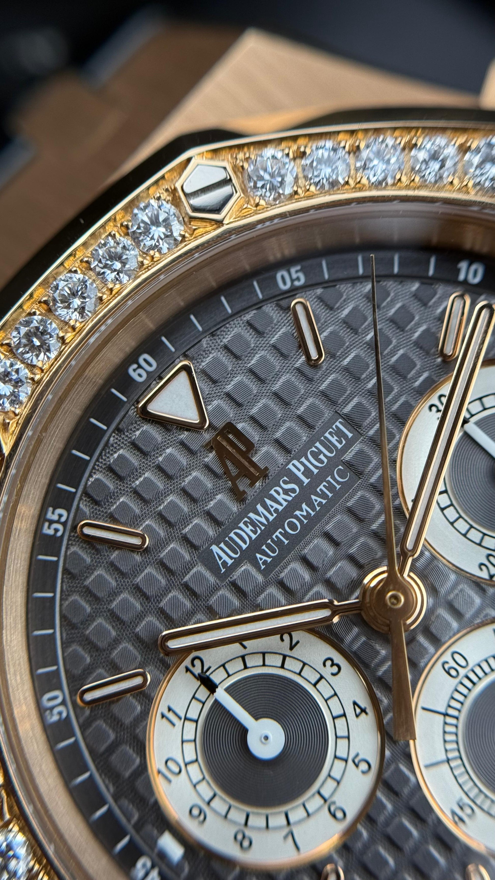 Audemars Piguet Royal Oak Offshore 39MM Rose Gold timepiece is a magnificent example of luxury and craftsmanship, combining the Swiss brand's iconic design with modern elegance. This watch features a stunning 39mm rose gold case, which radiates warmth and sophistication, making it a perfect accessory for those who appreciate refined style and the highest level of watchmaking excellence.