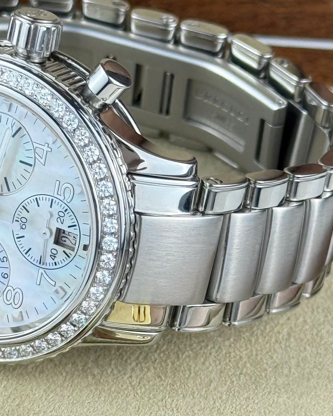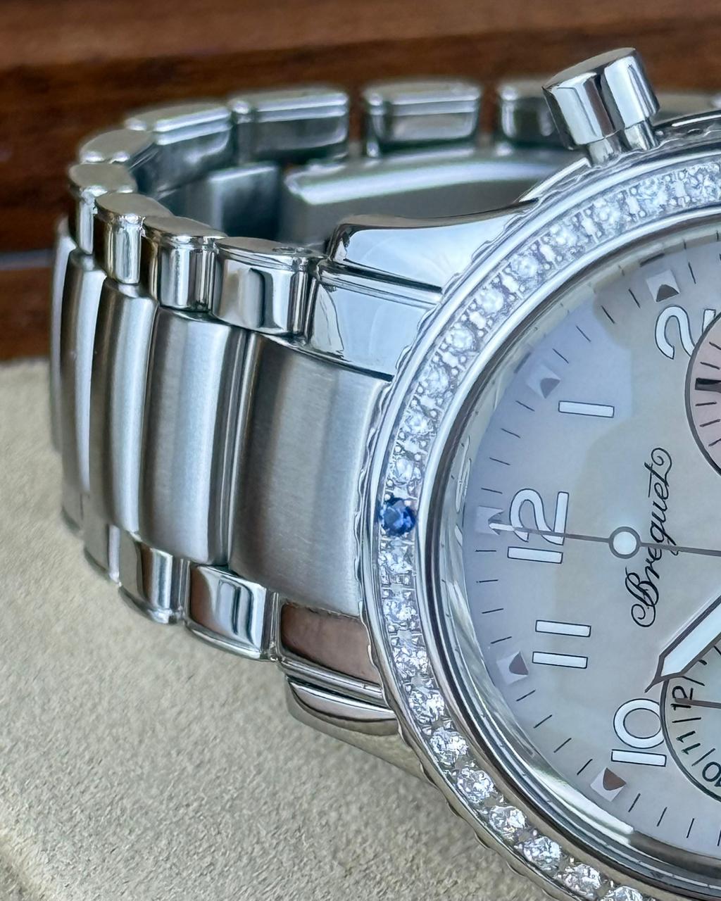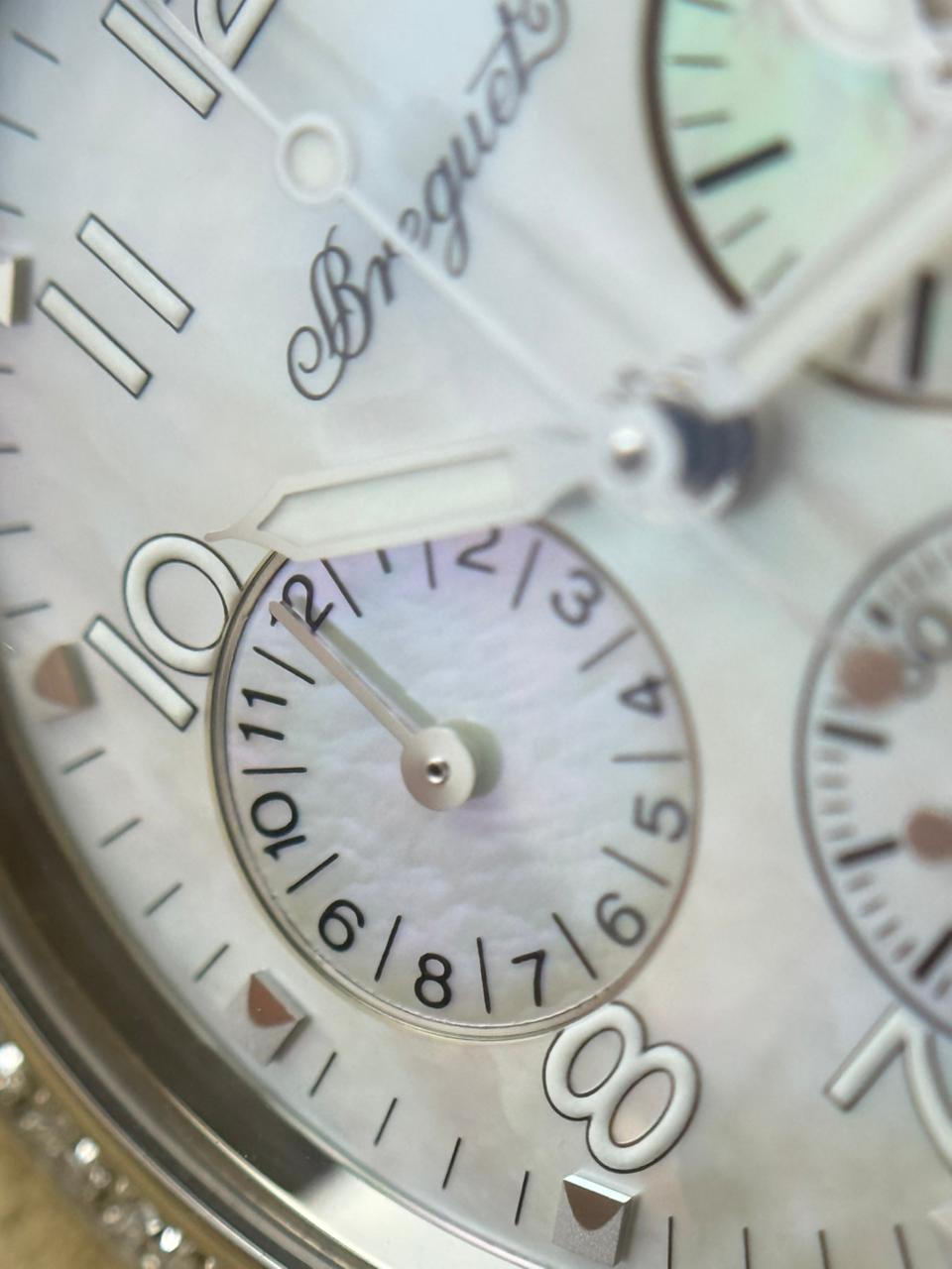 The Breguet Type XX, model 4821ST/59/S76 D000, features a 32.5 mm stainless steel case and is powered by the automatic Caliber 550 mechanical movement with a 45-hour power reserve. It offers chronograph functionality alongside a prominent large date display, showcasing Breguet’s exceptional craftsmanship, refined design, and outstanding quality.