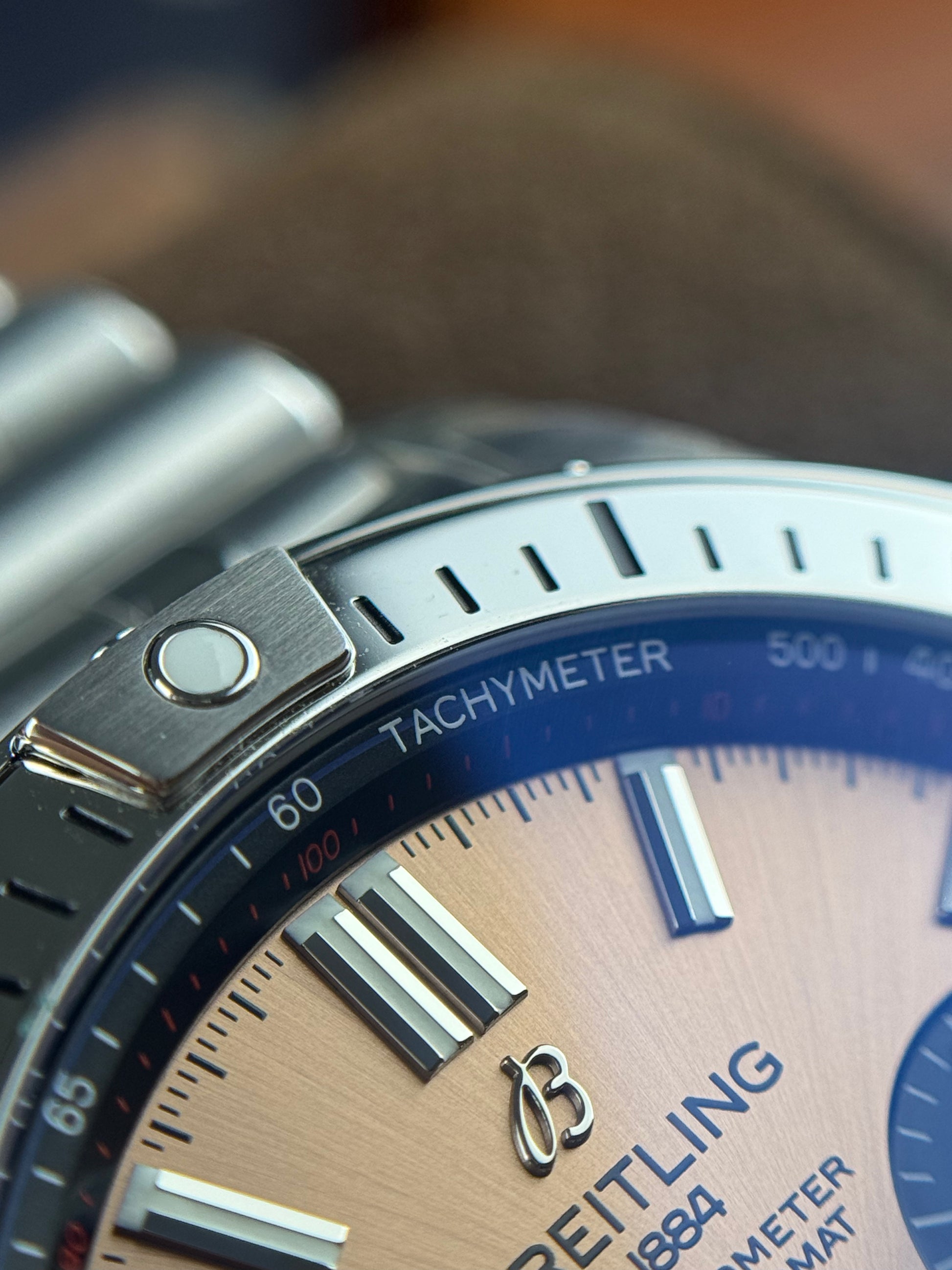 The Breitling Chronomat B01 AB0134101K1A1 is a striking men’s timepiece that blends technical mastery with bold design. Crafted from brushed and polished stainless steel, the 42mm case is paired with a distinctive copper-colored dial, accented by black sub-dials and a black flange featuring a tachymeter scale. Polished silver-tone applied hour markers and luminescent hands ensure excellent legibility in all conditions.