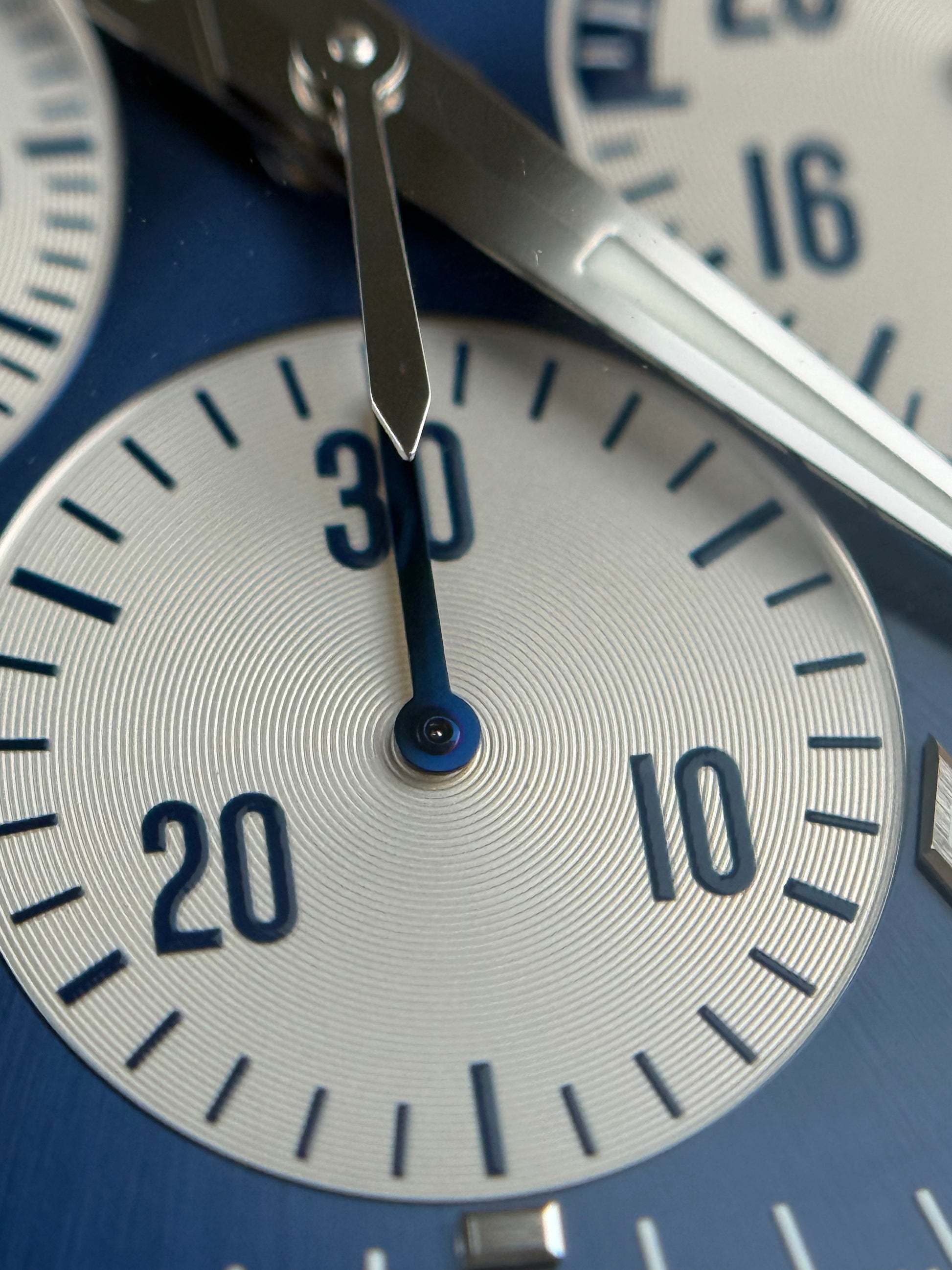 The Bvlgari Octo Finissimo Chronograph GMT 43mm in stainless steel with a striking blue dial is a masterclass in ultra-thin engineering, combining chronograph and dual-time GMT functionality within one of the world’s slimmest self-winding watch designs, showcased through a transparent caseback that reveals its refined mechanics, and finished with the iconic angular Octo case and integrated steel bracelet—an effortlessly elegant yet highly technical timepiece ideal for travel, sport, and sophisticated everyday wear.