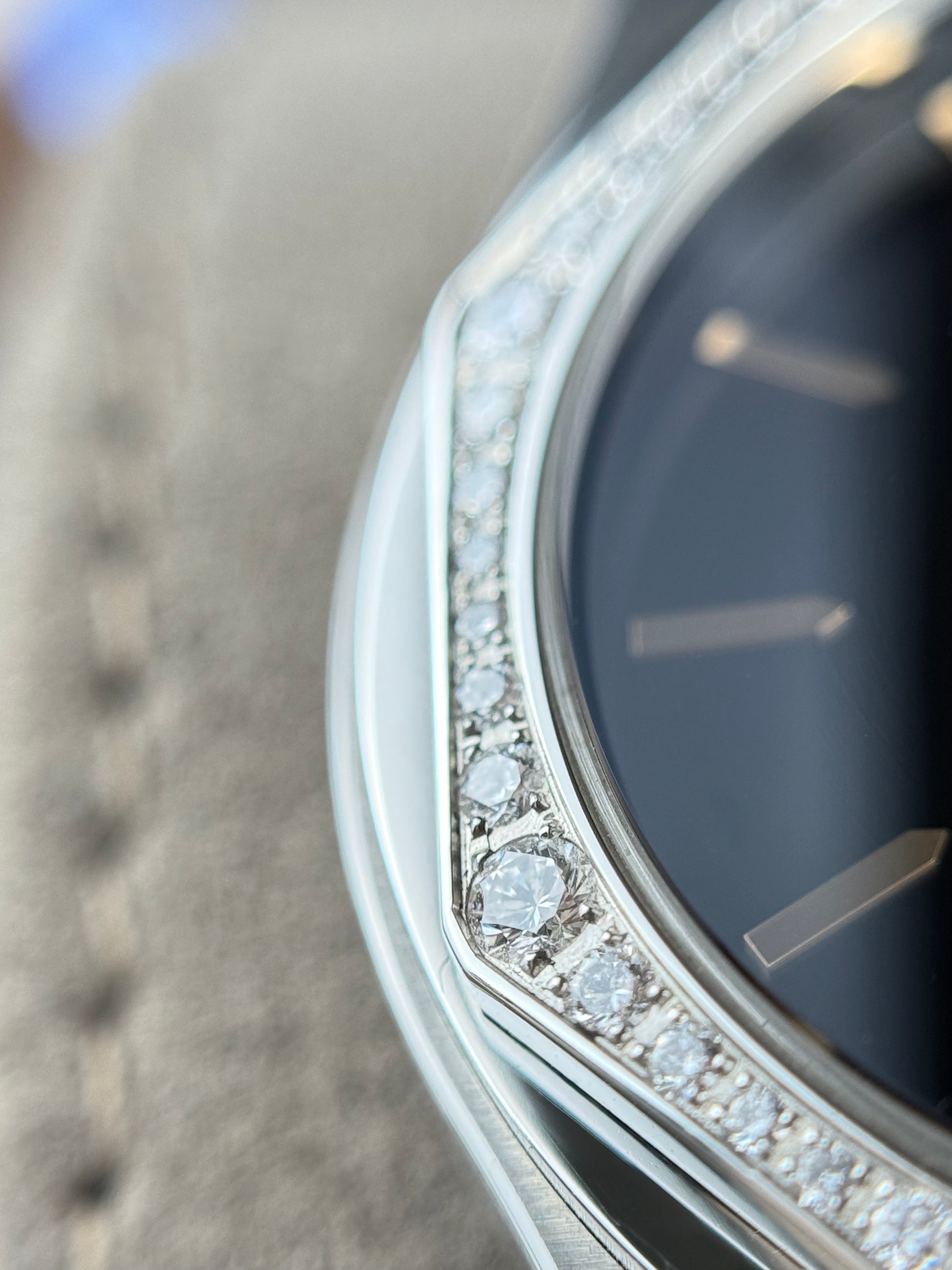 Girard-Perregaux introduces the Infinity Edition, showcasing the essence of the brand's most timeless collections dressed in infinitely pure black onyx. Manipulating onyx in this way requires exceptional skill and no less than 15 different operations, endowing each model with priceless value. The pink gold on its elements contrasts exquisitely against the Laureato’s cosmic shade. Inside, an in-house self-winding mechanical movement, the GP03300, developed and manufactured exclusively by Girard-Perregaux, guarantees supreme timekeeping. An octagonal bezel is set with 0.82-carat diamonds. Part of a limited edition of 88 timepieces and comes with a five-year international Girard-Perregaux warranty.